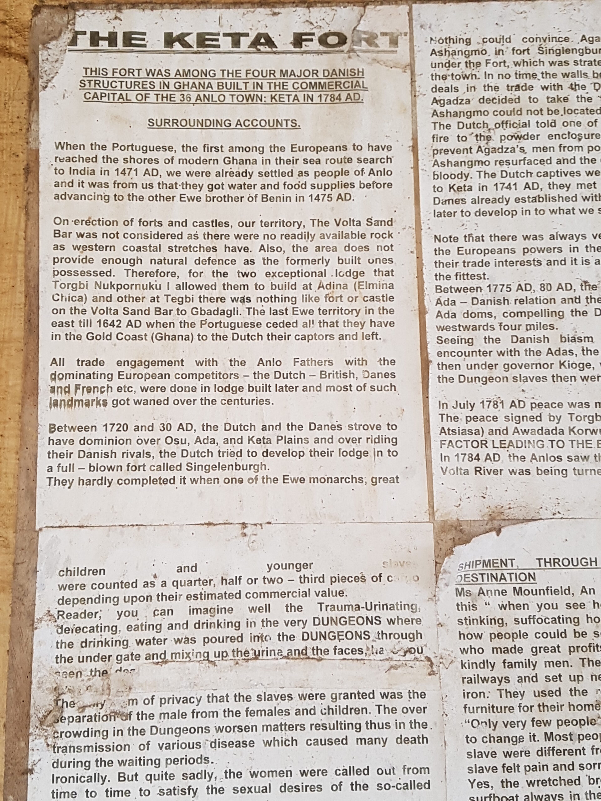 The fort was built in 1784 and was a place where slaves were held prior to being shipped to the Caribbeans. Apparently, the place had no ventilation until provision was made for it in 1850.